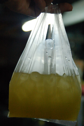 サトウキビジュース!!キンキンに冷えていて、甘くないミカンみたいでおいしい!!田舎に行くともっと甘かったきがする。。