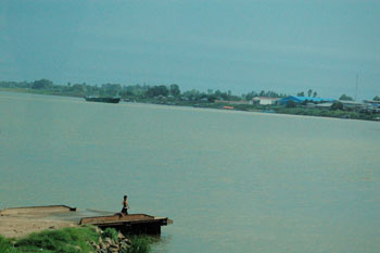 大きな河もバスを乗せて船で渡ります!!これはもしやメコンリバー!?