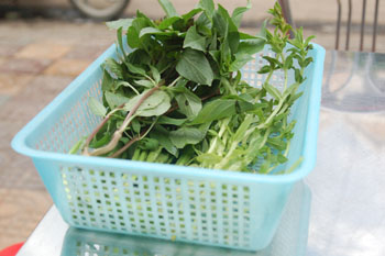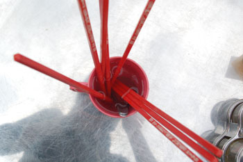 お箸はお湯に浸かって出て来る。殺菌のためかな。