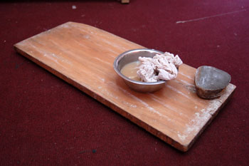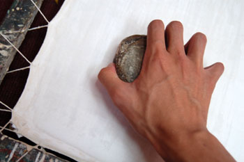 今日もキャンパスに作った液体の材料を刷り込みます。
