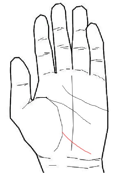 旅行線(りょこうせん)とは生命線下部から月丘に向けて流れる線のことです。