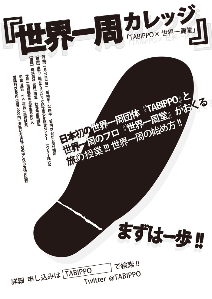 主催は日本初、そして日本で唯一の世界一周経験者で構成された世界一周団体「TABIPPO」